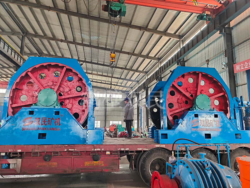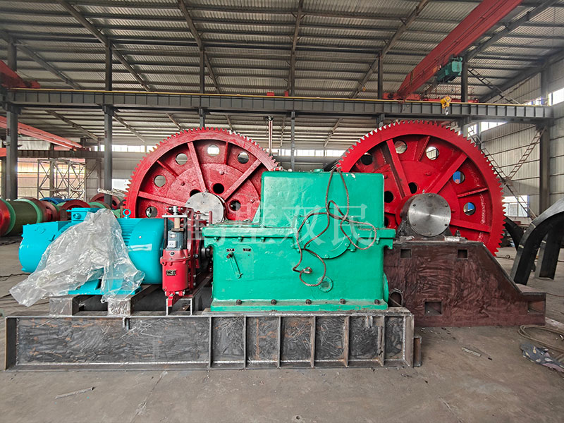 本絞車(chē)主要用于煤礦、金屬礦和非金屬礦豎井井筒掘進(jìn)時(shí)懸吊吊盤(pán)、水泵、水管、注漿泵、風(fēng)筒等掘進(jìn)設(shè)備和張緊穩(wěn)繩,該絞車(chē)系雙鋼絲繩懸吊。將減速機(jī)上的差動(dòng)手把放在差動(dòng)位置,若張緊穩(wěn)繩,可使兩根穩(wěn)繩的張緊力保持相等;若懸吊水管、注漿管、風(fēng)筒等管類(lèi)設(shè)備,可保證其被懸吊管類(lèi)設(shè)備與地面保持垂直的狀態(tài)。如果懸吊吊盤(pán)等盤(pán)狀設(shè)備,需將其差動(dòng)手把放在直通位置,才能實(shí)現(xiàn)兩繩繩速的一致。