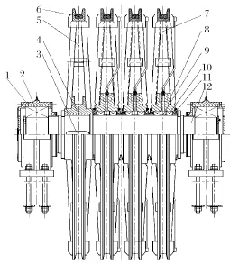 目前在用的多繩摩擦式提升機(jī)天輪裝置結(jié)構(gòu)有兩種,普通天輪裝置和新型天輪裝置。