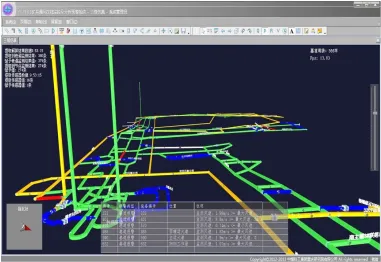 (1) 經(jīng)過對(duì)礦井各巷道坐標(biāo)參數(shù)進(jìn)行采集,建立數(shù)字化礦井模型,更加直觀展現(xiàn)通風(fēng)網(wǎng)絡(luò)的多維動(dòng)態(tài)系統(tǒng);經(jīng)過對(duì)巷道主要測(cè)站安裝傳感器,實(shí)時(shí)監(jiān)測(cè)采集通風(fēng)數(shù)據(jù),將鼠標(biāo)點(diǎn)擊在巷道模型任一點(diǎn)上進(jìn)行多角度旋轉(zhuǎn)觀測(cè),屏幕上會(huì)自動(dòng)出現(xiàn)對(duì)應(yīng)地點(diǎn)傳感器的所有回傳信息,如傳感器編號(hào)、運(yùn)行狀態(tài)、是否報(bào)警、安裝位置名稱、監(jiān)測(cè)風(fēng)速指標(biāo)、zui大預(yù)警指標(biāo)和甲烷、一氧化碳等氣體濃度,可供管理技術(shù)人員進(jìn)行綜合分析評(píng)價(jià),實(shí)現(xiàn)礦井通風(fēng)的可視化、數(shù)字化管理。巷道數(shù)字化模型效果如圖7 所示。