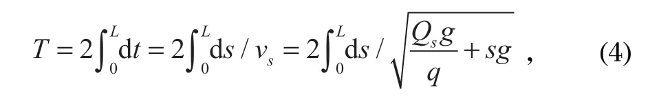 振動波周期法是依據(jù)振動波在鋼絲繩上的傳遞速度和鋼絲繩張力的關(guān)系,通過速度傳感器測量鋼絲繩振動波周期,得到傳遞速度,進(jìn)而計(jì)算出鋼絲繩張力。