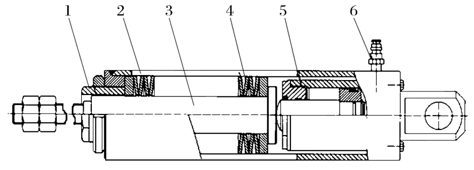 (5)驅動器結構集成化 改造時采用碟形彈簧串聯(lián)結構(見圖 2)。碟簧串和千斤頂置于一個套筒內,液壓彈簧驅動器成為一個整體結構(相當于盤式閘的閘頭)。該結構更加簡單,便于安裝、調試與維護,易于實現(xiàn)標準化、集成化、系列化。