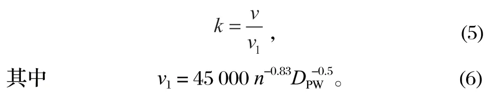 式中:v 為實際運動黏度;v1 為參考運動黏度;n 為軸承轉(zhuǎn)速;DPW 為軸承節(jié)圓直徑。
