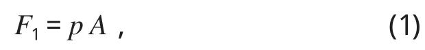 如圖1所示,F(xiàn)1為油壓力,F(xiàn)2為彈簧預(yù)壓縮力。顯而易見,盤形制動(dòng)器是靠油壓力 F1松閘,彈簧預(yù)壓縮力 F2制動(dòng)來實(shí)現(xiàn)其功能的。
