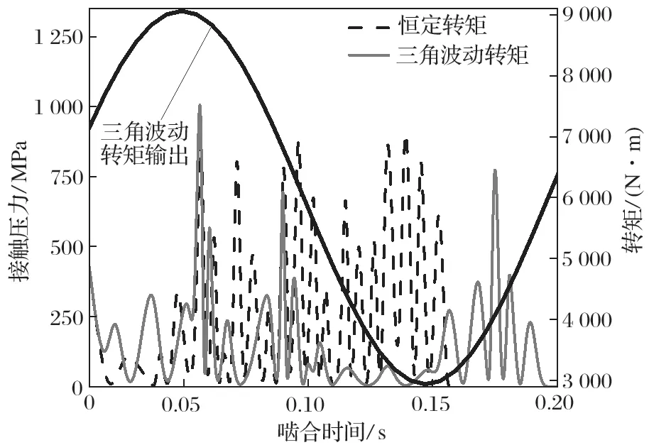 圖10 恒定轉矩與三角波動轉矩接觸壓力的對比
