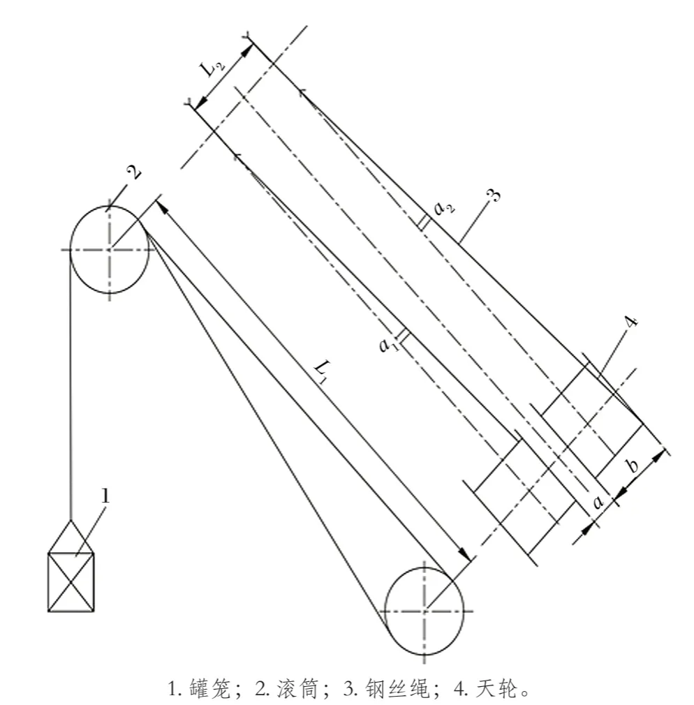 根據(jù)《金屬非金屬礦山安全規(guī)程》第 6.4.4.12 條規(guī)定,1 號天輪外偏角和 2 號天輪外偏角都超過了規(guī)定的 1°30′,均需要進行調(diào)整。