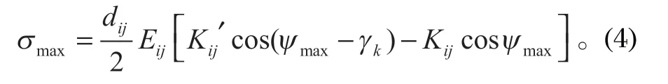 式中:dij 為第 j 股中的第 i 個鋼絲繩只有一根鋼絲繩時的直徑值,mm;Eij 為第 j 個單根鋼絲繩的彈性模量;Kij 為在第 j 股中的第 i 個鋼絲繩層在進(jìn)行變形前后的曲率,(°)/mm。